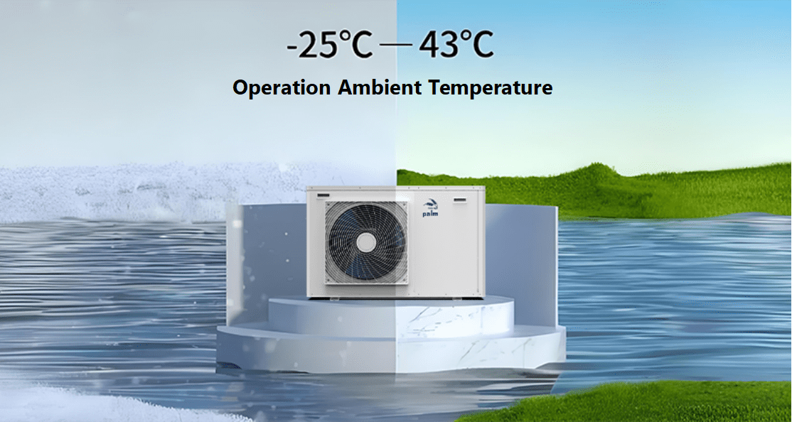 Our heat pump is designed for stable operation in a wide temperature range, from -25°C to 43°C ambient temperature. It ensures reliable heating and cooling performance even in extreme weather conditions, making it suitable for diverse climates. With robust construction and advanced technology, the system maintains consistent efficiency and comfort, providing optimal performance year-round, regardless of the surrounding temperature. Ideal for both residential and commercial use in varying environmental conditions.